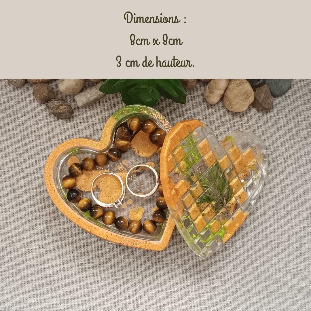 Boîte à trésors cœur en résine - Nature Morte automnale, tons jaunes et verts mousse