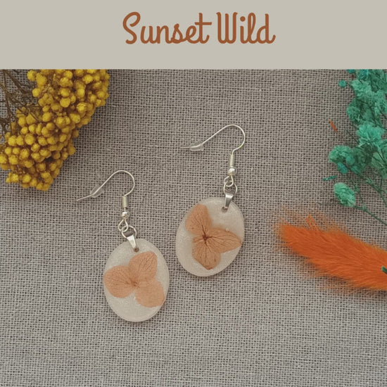 Boucles d’oreilles résine fleurs séchées – Sunset Wild – Duo orange beige