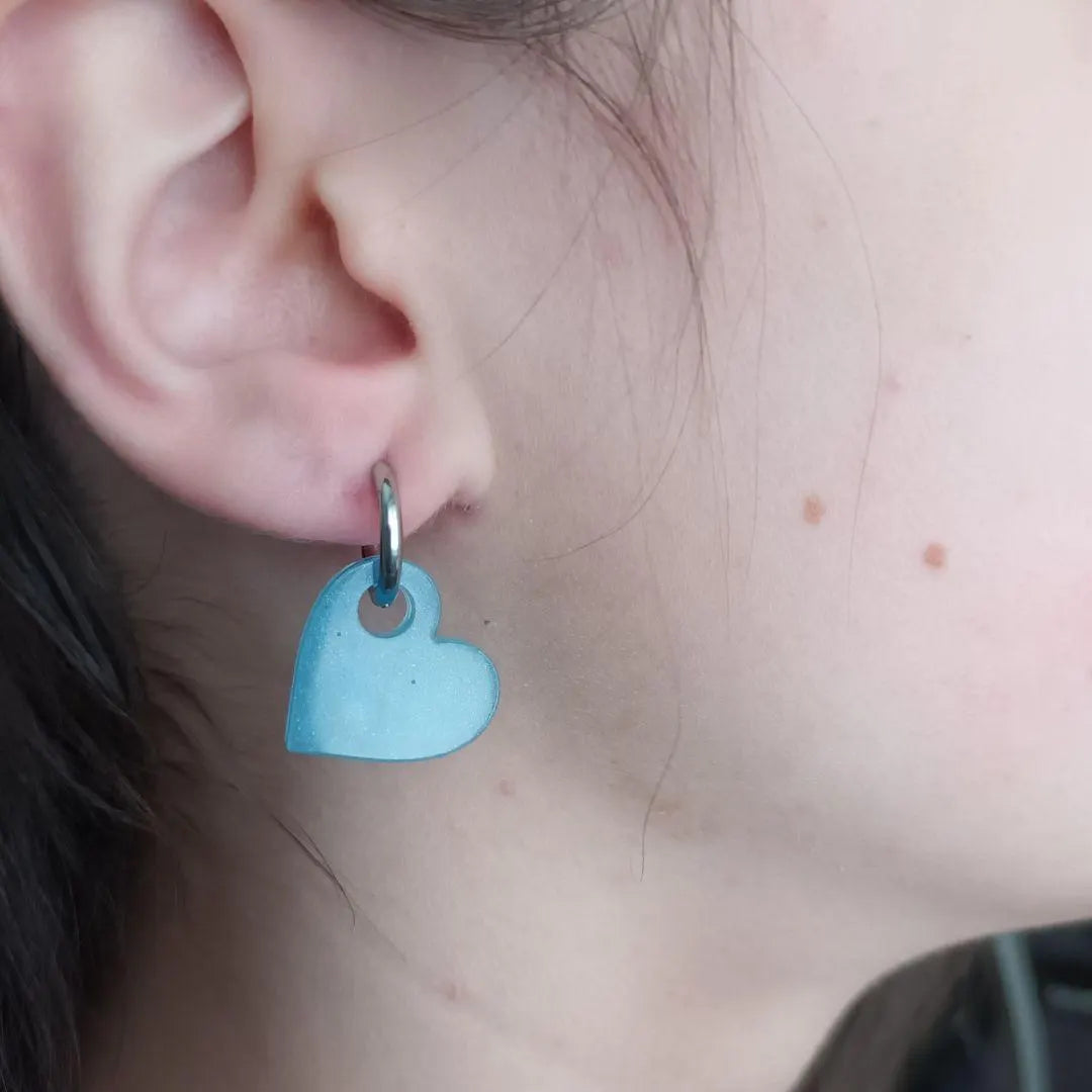 Apportez une touche de délicatesse givrée avec ces pampilles en forme de cœur en résine bleu transparent, coulées à la main dans mon atelier.