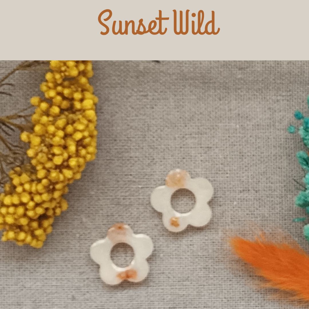 lot de 2 Pampilles résine nature orange & beiges – Paire Sunset Wild – Bijoux ethniques nature