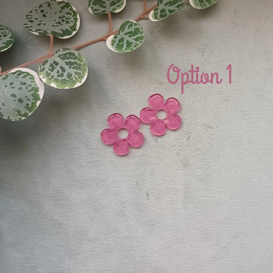 Lot de 2 Pampilles fleur en résine – Collection Rosita – 2 variantes : rose transparent, feuilles dorées,