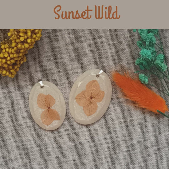Inspiré des dernières lueurs du jour dans la nature, ce pendentif en résine capture la magie du moment avec une fleur orange suspendue dans un fond nacré beige. Élégant, solaire, naturel.