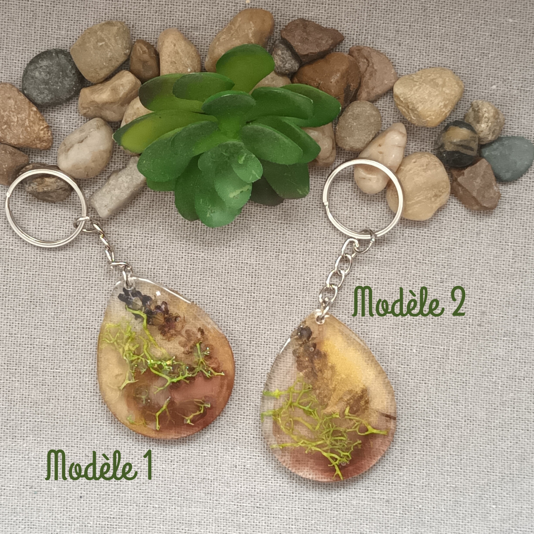 Porte-clés en résine Nature Morte – inclusions automnales et végétales