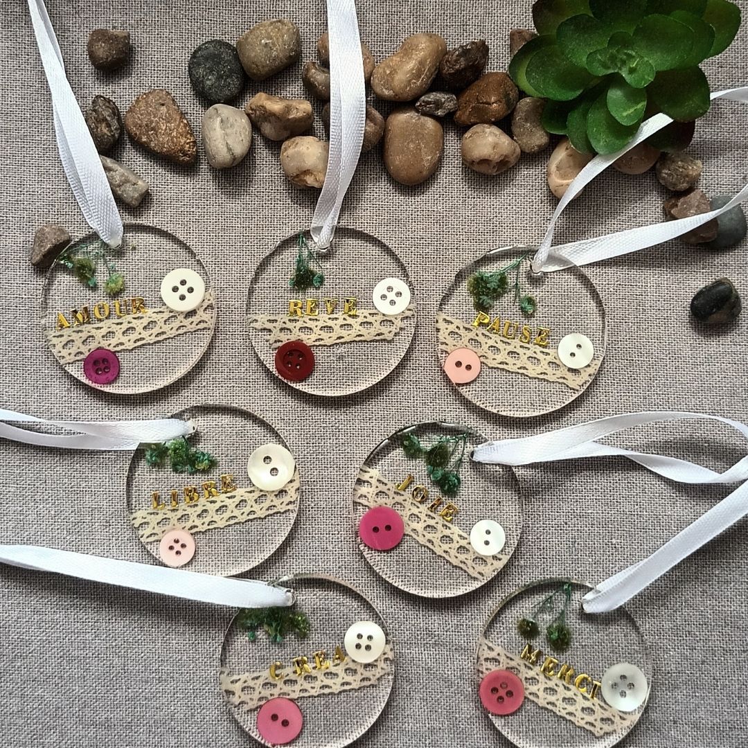 Suspensions en résine artisanales avec mots positifs – Décoration murale et cadeau unique 5 cm